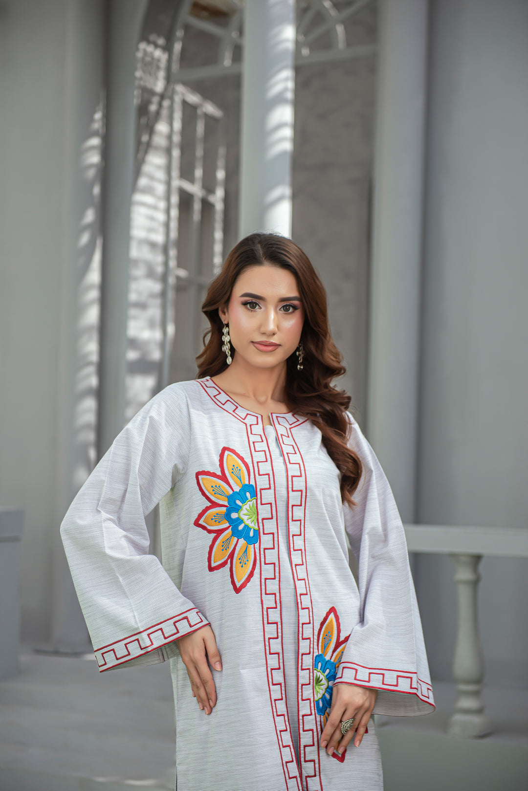 Features Floral and geometric Embroidery on front and sleeves
